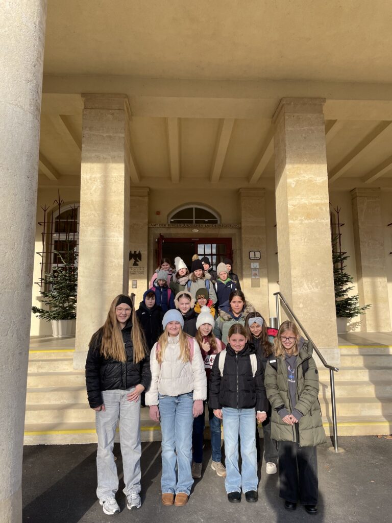 Anfang Jänner unternahmen die Mädchen und Burschen der ersten Klassen eine Exkursion nach Eisenstadt. Bei einer Führung im Landhaus erhielten sie einen Überblick über den historischen Bau sowie über Tagesabläufe der Landespolitiker.