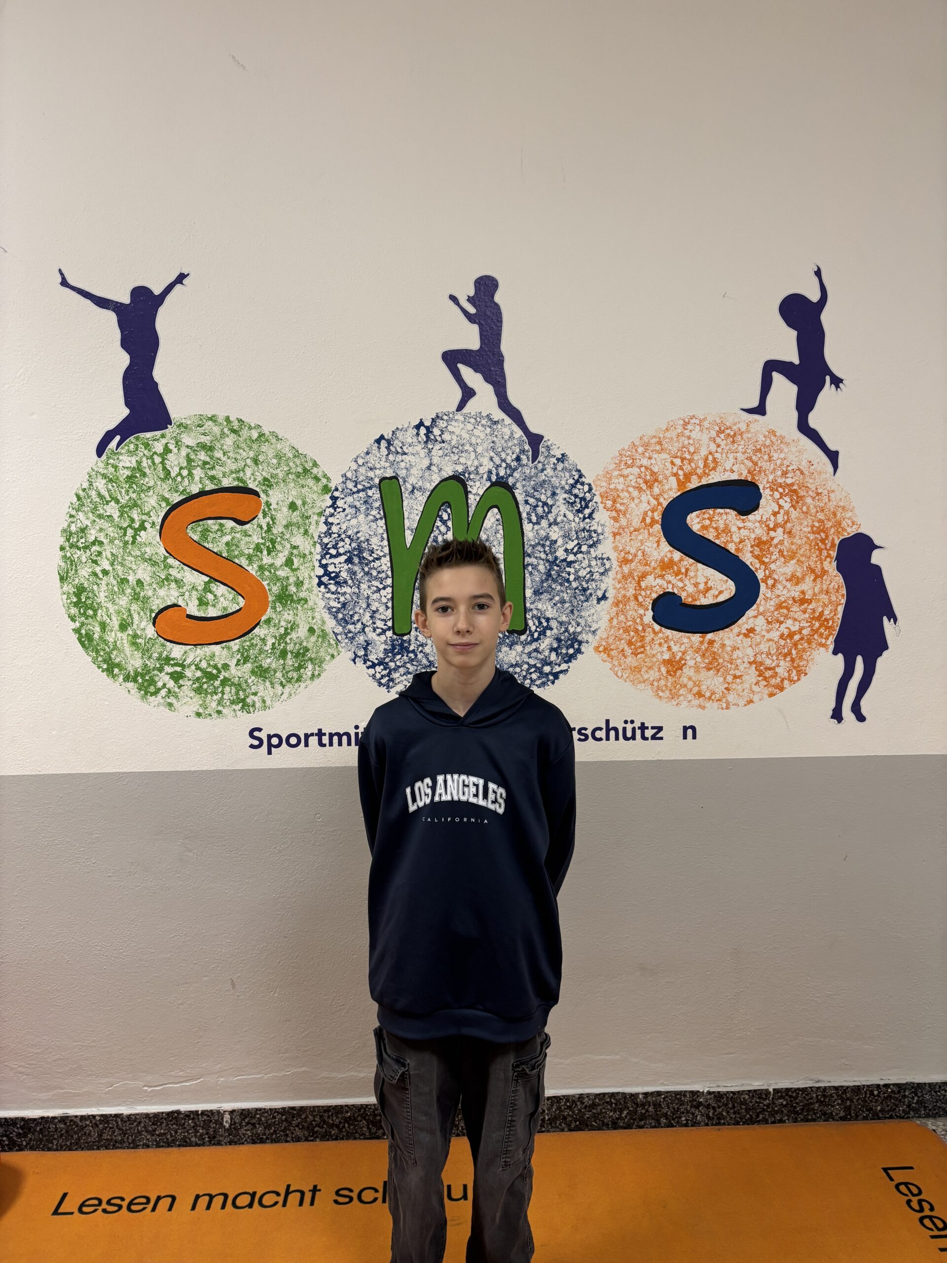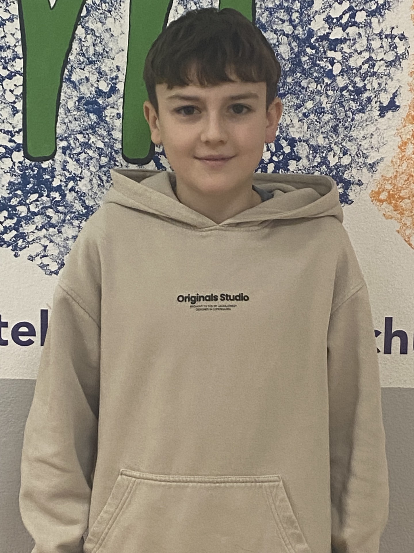 Seit dem Herbst 2025 ist Jeremy Teil unserer Klasse. Gleich zu Beginn zeigte er großen Mut, indem er an der Projektwoche teilnahm, obwohl er noch keinen Mitschüler kannte. Er hat sich rasch und sehr gut in die Klassengemeinschaft eingefunden und Freundschaften geschlossen. Durch seine ruhige Art und sein stets freundliches, lächelndes Auftreten ist Jeremy eine echte Bereicherung für unsere aufgeweckte Klasse. Schön, dass du bei uns bist.